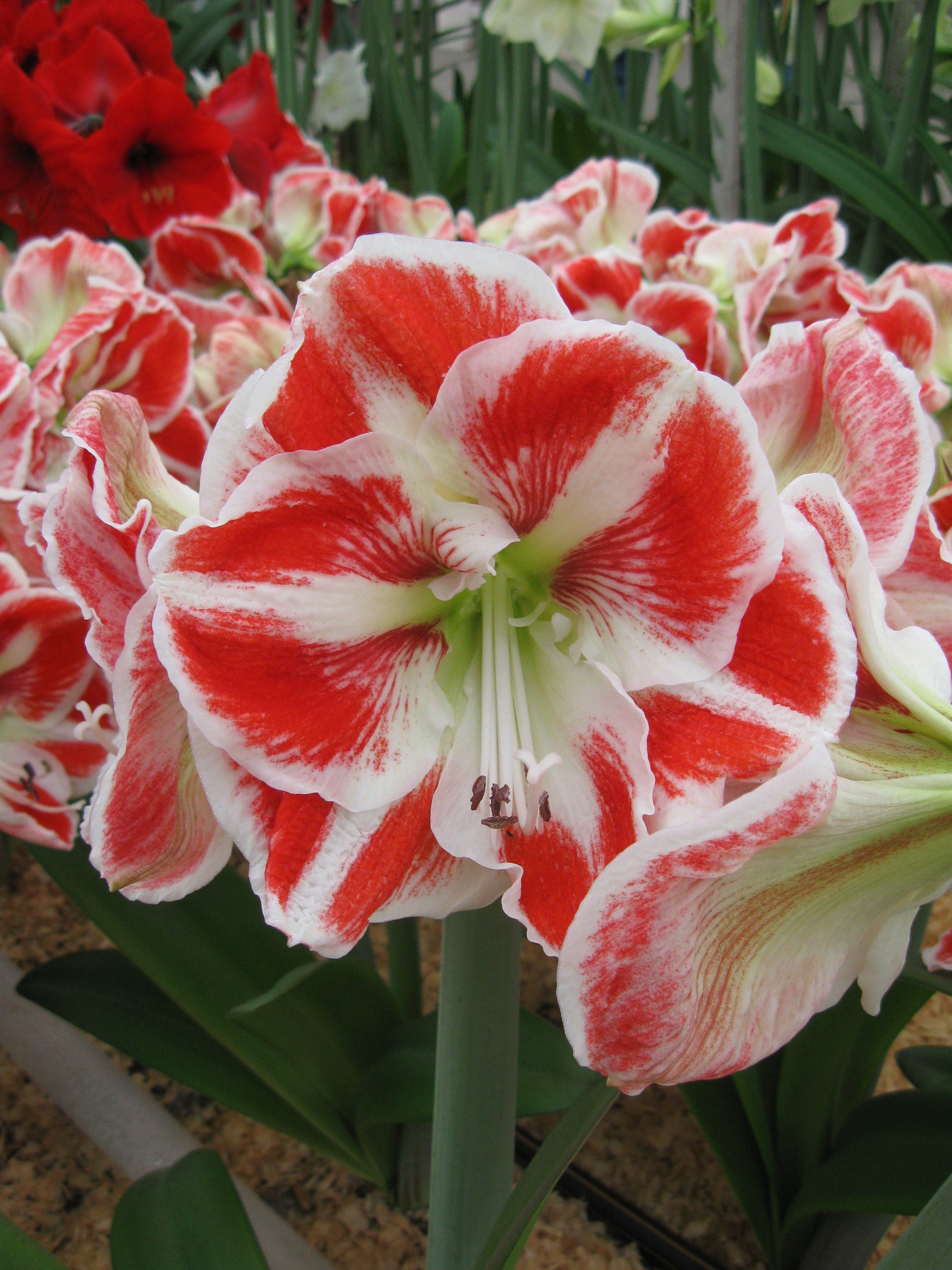 Amaryllis Samba is a bold and eye-catching variety, featuring large, trumpet-shaped blooms with rich red petals edged in crisp white. The dramatic contrast and ruffled petal edges add an extra layer of elegance to this stunning flower. With multiple blossoms per sturdy stem, ‘Samba’ creates a dazzling display, perfect for brightening indoor spaces during the winter months. Easy to grow and long-lasting, this variety thrives in well-drained soil and bright, indirect light, making it a standout choice for holiday décor and seasonal arrangements.